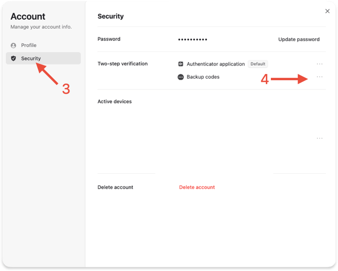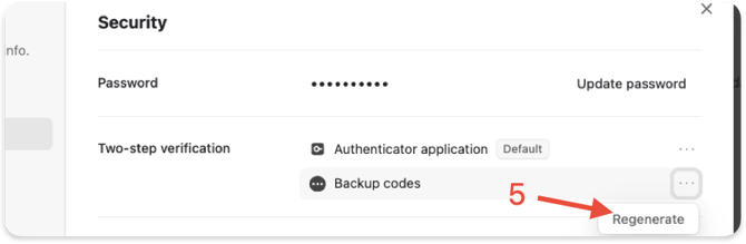 Next to Backup Codes, click the three horizontal dots (⋯) (arrow #4 in the image below).