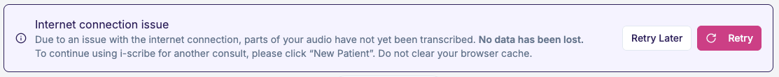 - If the missing parts of the transcript still haven't appeared (and/or if you're still seeing the "Re-processing" error above) confirm the internet is working (e.g. by checking a few different websites)